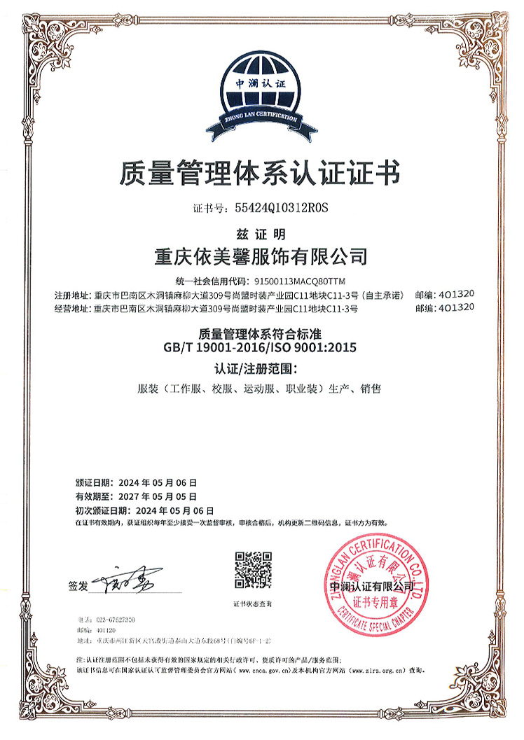 質量是(shì)我們的(de)生(shēng)命線。依美(měi)馨采用(≈♥₹←yòng)環保舒适的(de)面料,如(rú)純棉、混紡等材質,确保穿著(z&♦he)體(tǐ)驗的(de)舒适度與耐用(yòng)性。 > 在生(shēng)産過程中,我們嚴格執行(xín πg)ISO質量管理(lǐ)體(tǐ)系标準,≤★從(cóng)原料采購(gòu)到(dào)成£±₹品檢驗,每一(yī)道(dào)工(gōng)序都(d<$≤ōu)經過嚴格把關, ±"✔¥ 力求為(wèi)每一(yī)位學生(s∑βφhēng)提供安全、健康、無刺激的(de)校(xià®" o)服産品。 此外(wài),₩δ我們還(hái)引入先進的(de)生(shēng)産設備與技(jì)術(sβ©→♣hù),保證校(xiào)服的(de)版型精準,∑♦↔縫制(zhì)精細,讓每一(yī)件(jiàn)校(xià♦' o)服都(dōu)能(néng)完美(měi)貼合學生®λ♠(shēng)的(de)身(shēn)形,展現©×(xiàn)最佳風(fēng)采。